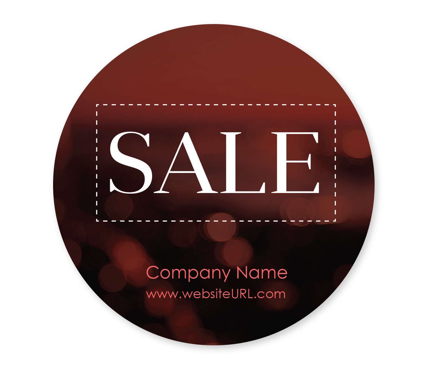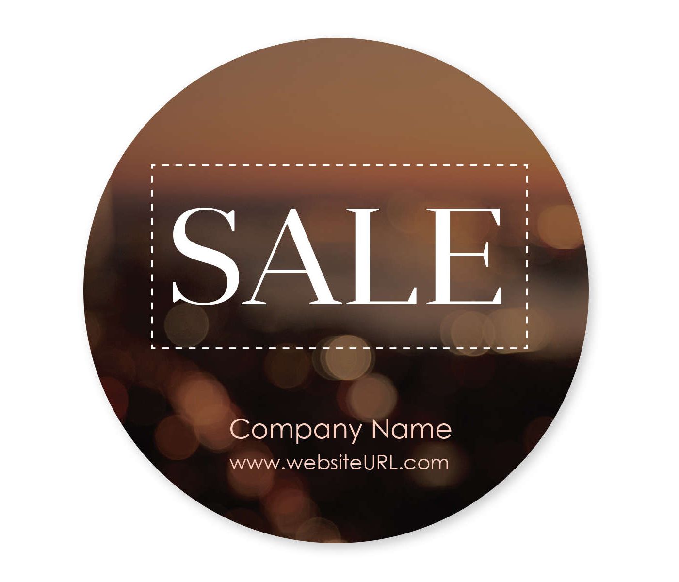 When you're searching for the perfect way to highlight a sales event, new product launch or discounted and clearance merchandise for your customers, look no further than the attractive graphics and bold print on this Blurred Lights Sticker 4x4 Circle. Each sticker sets the mood and delivers your big savings or new product message at a glance, even before your clientele check out your logo, business and website information. This sticker is good-looking enough for customers to want to keep it, and put it on laptops, notebooks, equipment, in a cubicle, anywhere, so your business logo and information stay top of mind. Stickers can also serve as word-of-mouth advertising since they're often viewed as a personal recommendation of the person displaying them. Plus, stickers are effective because they help your message stand out from the crowded field of ordinary advertising your competitors use. And, the number of ways for you to use these stickers is limited only by your imagination. Use them alone in your shop or boutique, use them to feature specific products, put them on retail bags to highlight a future event, put them on other advertising pieces, or attach them to the back of direct mail envelopes. Select your favorite font from our wide selection. Samples are available for registered customers, just call the phone number on this site or chat with an agent between 9 AM and 8 PM ET, Monday through Friday. No charge for art modifications, plus you get free virtual proofs, so you can be confident you'll get exactly what you want. And, if you prefer, you can order these sharp-looking stickers blank, without imprinting, in bulk. Make this Blurred Lights Sticker 4x4 Circle a part of your next campaign or event. Order today.
