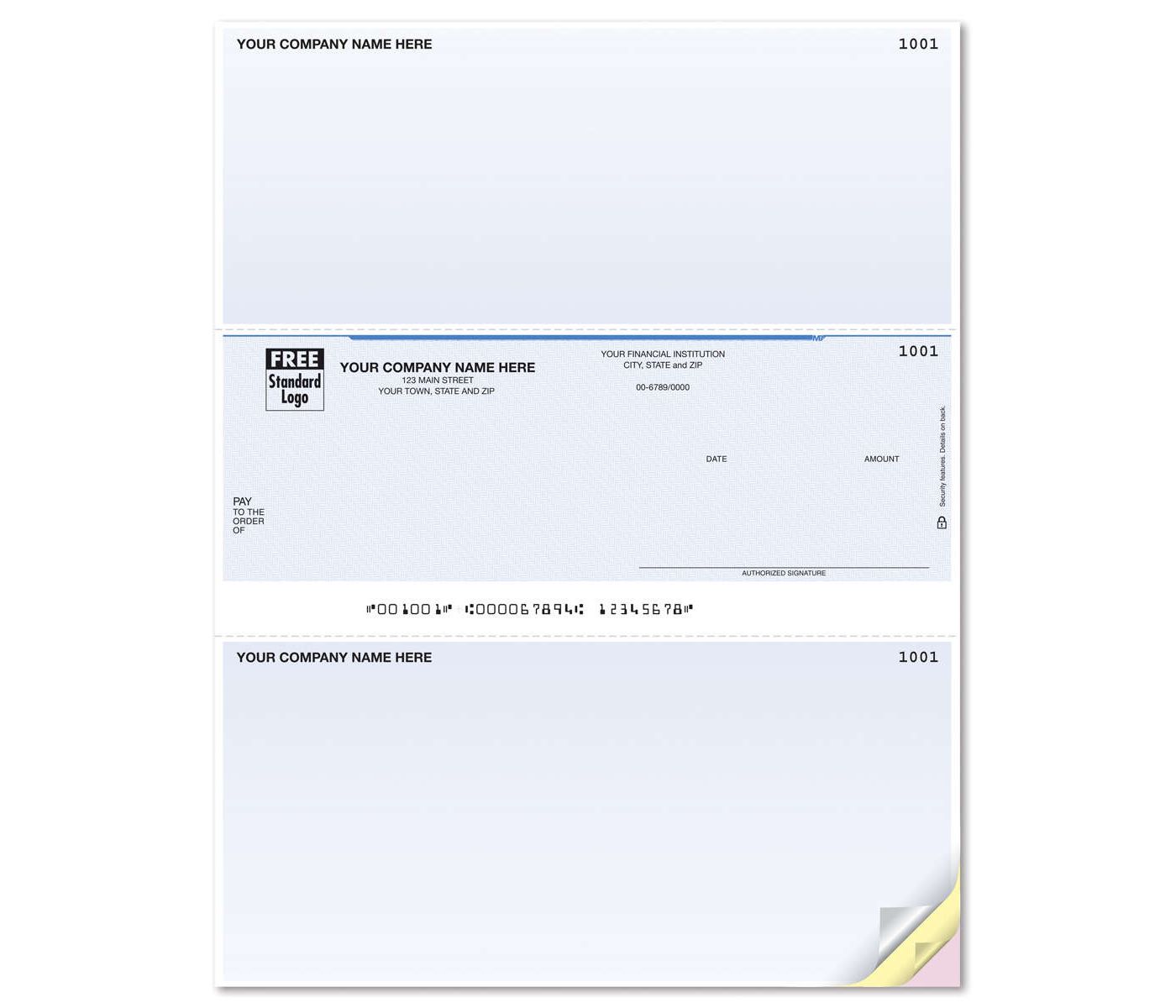 Free personalization: Includes your business imprint plus choice of standard check color, typeface & standard business logo.