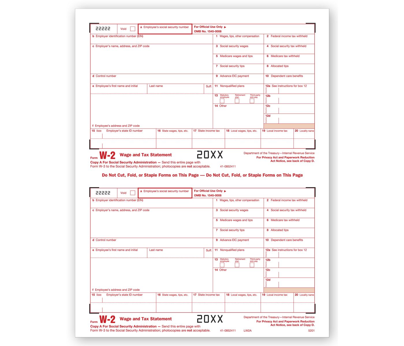 Laser W-2, Federal Copy A