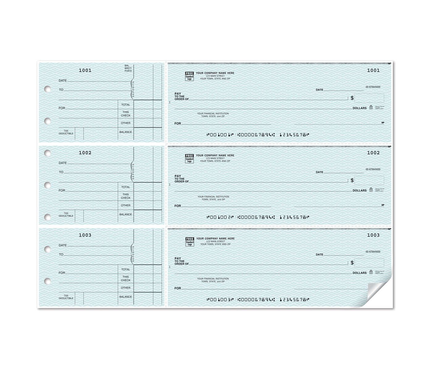 Side tear checks are perforated for easy check detachment, leaving a permanent transaction record.