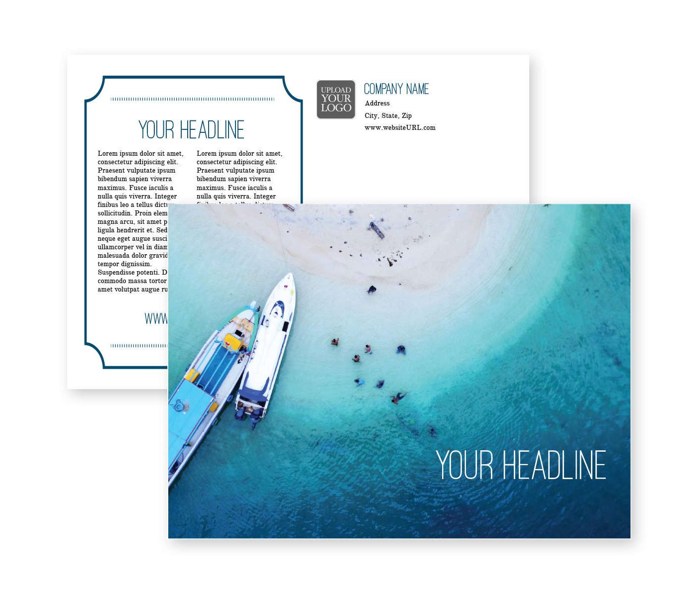 The attractive graphics on this Welcome to Paradise Postcard 5x7 Rectangle Horizontal give you the opportunity to set the mood even before your targeted prospective customers see your logo, contact information and sales message. Paradise. This postcard is sure to garner attention the instant it comes out of the mailbox, which means your business promotion, special sales event or general branding message will get seen. In fact, according to the U.S. Post Office, postcards get viewed 6X as often as sales letters, in part because there's no envelope to open, and no long sales letter to wade through. Additionally, testing the effectiveness of your postcards effort is easy, and cost-effective, especially when you track success by having customers bring the card in when they visit or use a promo code when they contact you. These postcards are versatile enough to get most any message out, promoting a new product launch, announcing a new store opening, introducing a new service or loyalty program. They're tangible, something your customers can hold in their hand and keep, unlike other forms of online, radio and television advertising which flit by and are gone. Choose your favorite font from our wide selection. Samples are available for registered customers, just call the phone number on this site or chat with an agent between 9 AM and 8 PM ET, Monday through Friday. No charge for art modifications, plus you get free virtual proofs, so you'll get exactly what you want. And, if you prefer, you can order these sharp-looking postcards blank, without preprinting, to add your own custom message. Order today to make this Paradise Postcard 5x7 Rectangle Horizontal a productive part of your advertising strategy.