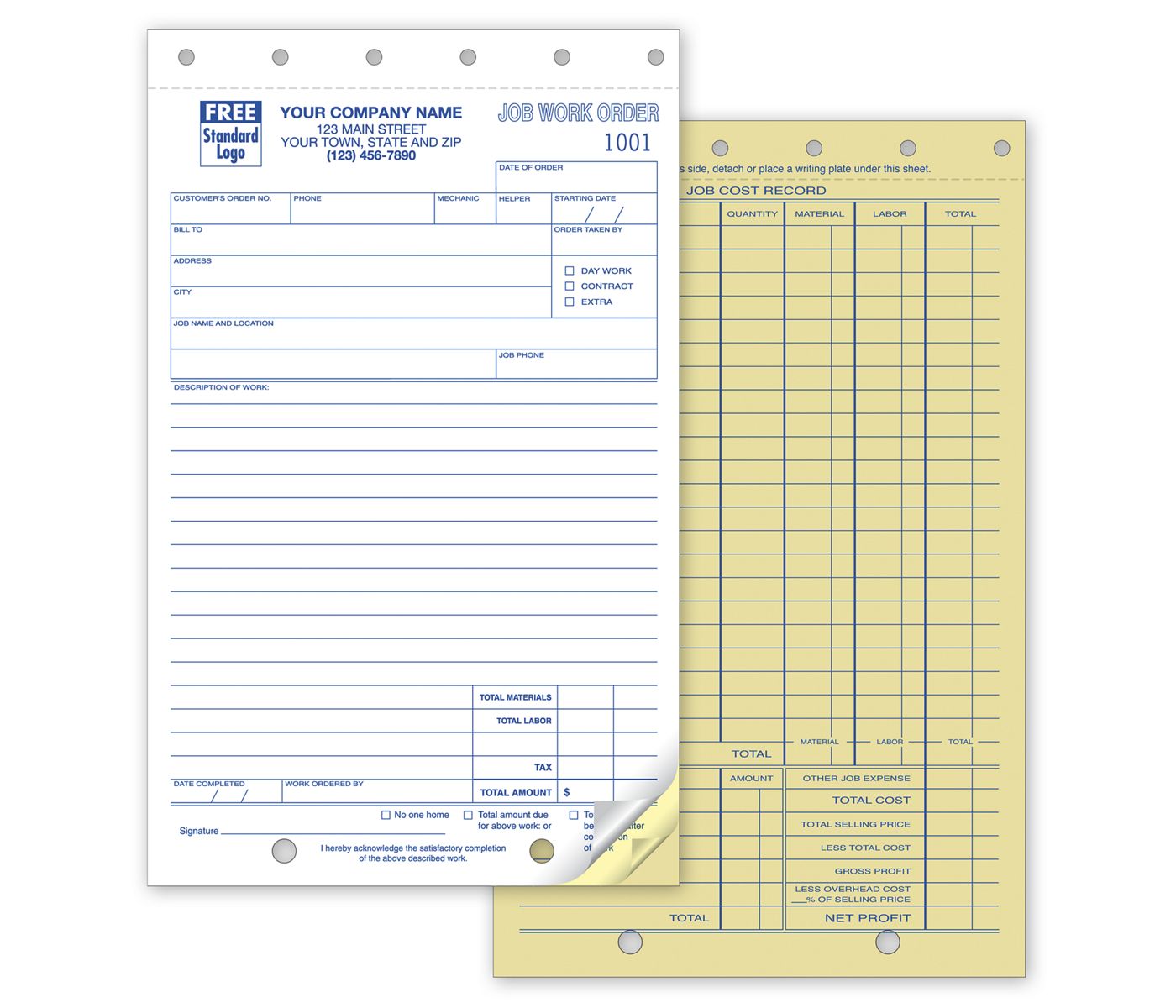 Work Orders, Job, Carbonless, Small Format 2-Part